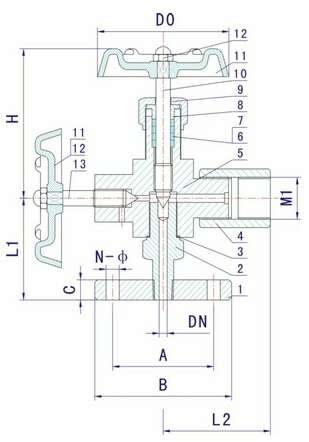 公称通径 DN | M1 | B | L1 | L2 | H | D0 |